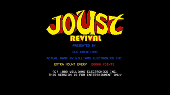Welcome to JOUST REVIVAL. This is a remake of the classic 1982 game of Joust. This is my version of the complete game with "Infinite" levels. It plays close to the original game. This version features local high scores and is connected to a global leader-board for the Joust Champions. This project was about 72 hours in the making.